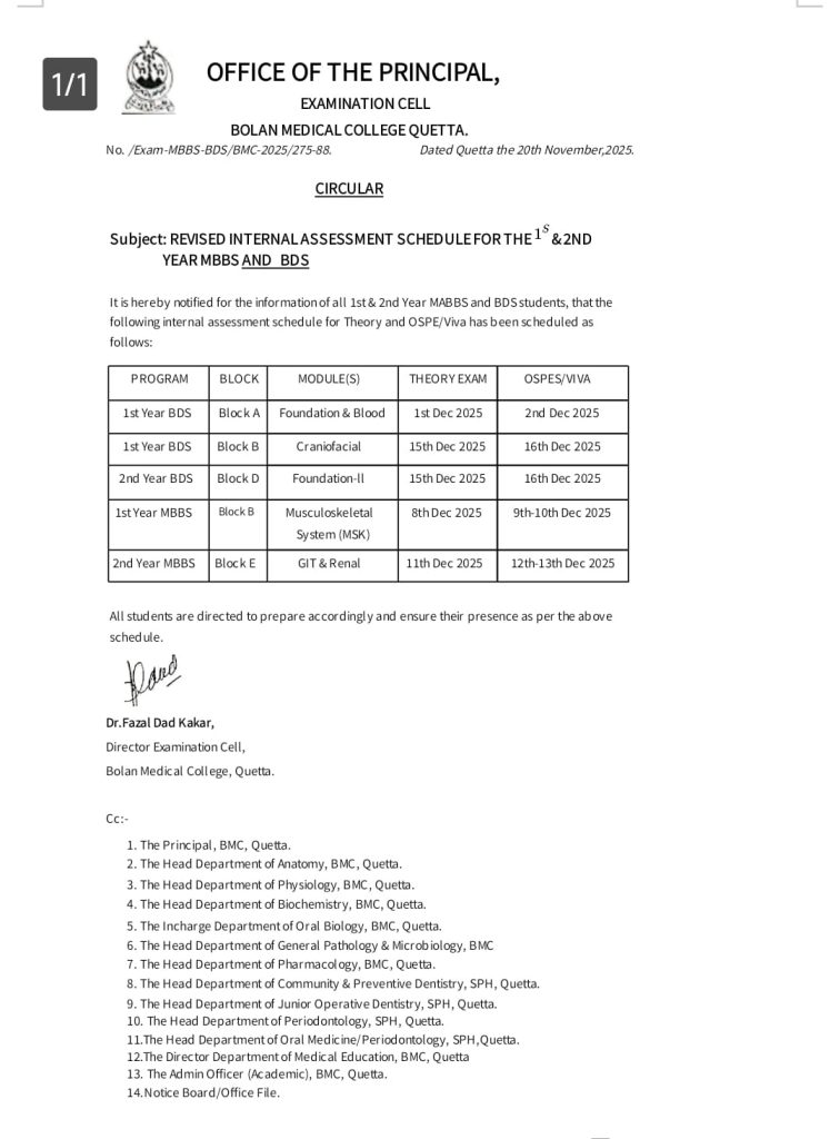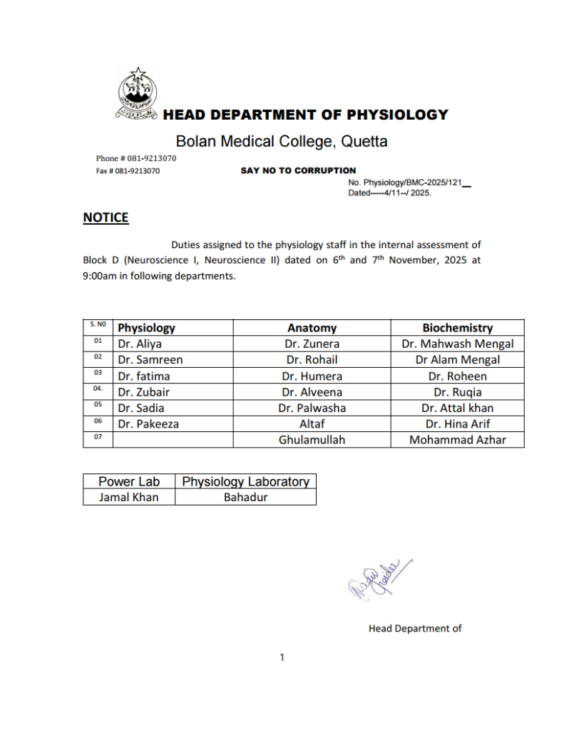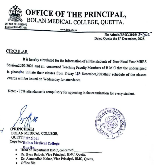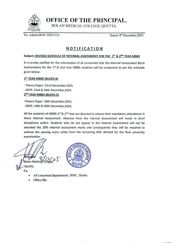 Speaking to the media afterwards, Principal Bolan Medical College Prof. Dr. Raz Muhammad Kakar said that it was a matter of great fortune that the Pakistan Physiological Conference was being held after 20 years. He shared that students from various departments had prepared advanced, well-equipped scientific models for the event. He further noted that the college was originally built for 150 students but currently accommodates a much larger number of students.