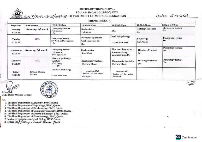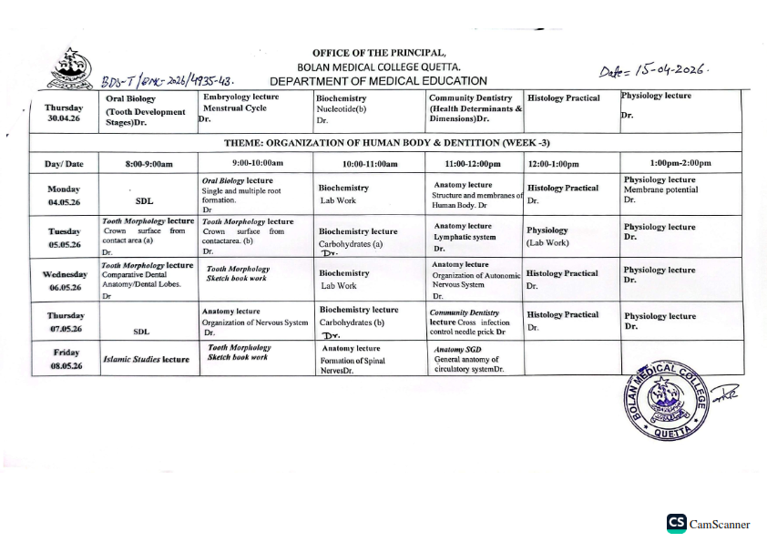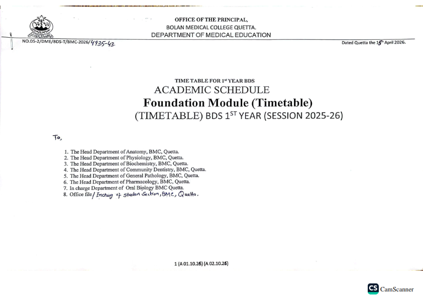admin April 17, 2026 Latest News, News 2 views 1st Year BDS Foundation Module (Timetable) Session 2025-26