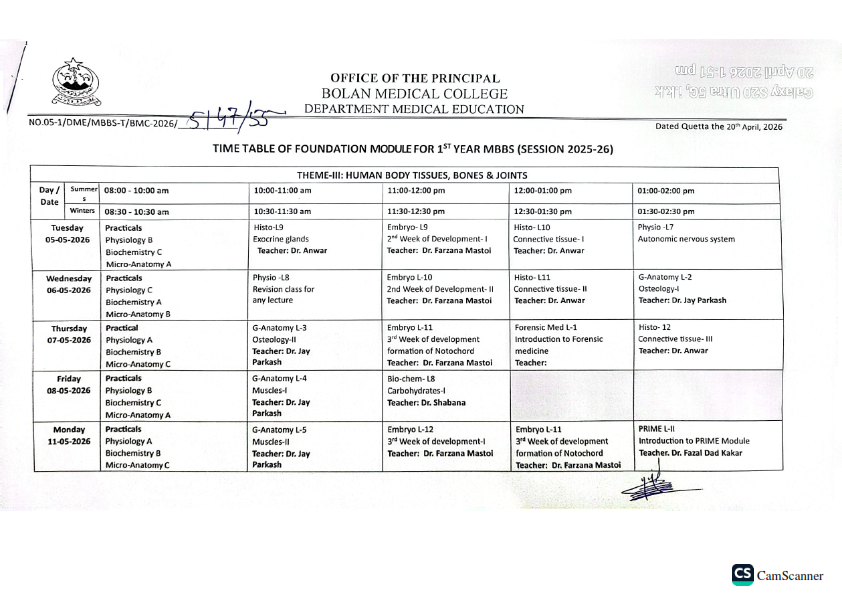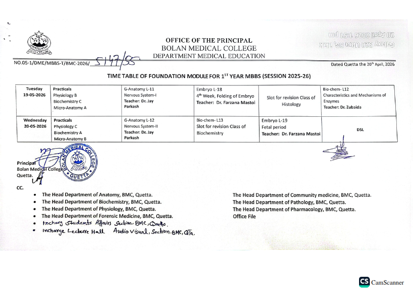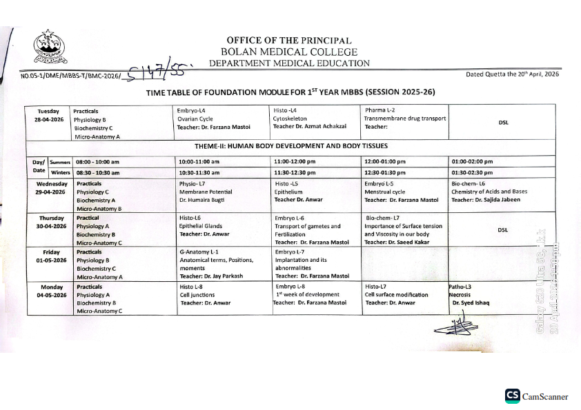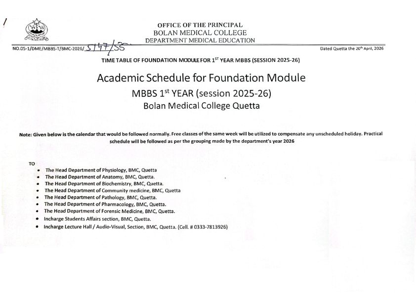 admin April 21, 2026 Latest News, News 2 views Academic schedule for foundation module MBBS 1st Year (Session 2025-26)